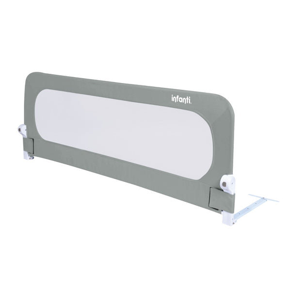 El barandal de seguridad Infanti está diseñado para adaptarse a la mayoría de las camas de tamaño estándar. Su color gris neutro lo hace fácil de combinar con cualquier decoración de dormitorio. Es una solución práctica y funcional para la transición de los niños desde la cuna a una cama más grande.