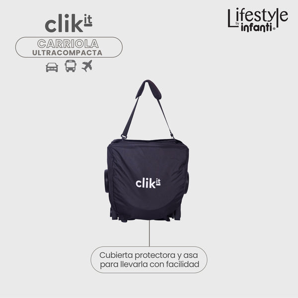 Clik-it es tu mejor aliada para moverte con libertad, ya sea en viajes, paseos urbanos o el día a día. Ultracompacta y funcional, se pliega fácilmente e incluye cubierta protectora y asa para llevarla a todos con la característica especial de llevarla en equipaje de avión.