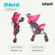 La carriola Skit es práctica, super ligera y cómoda, por su diseño compacto podrás disfrutar de tu paseo, además gracias a su correa es fácil de transportar.