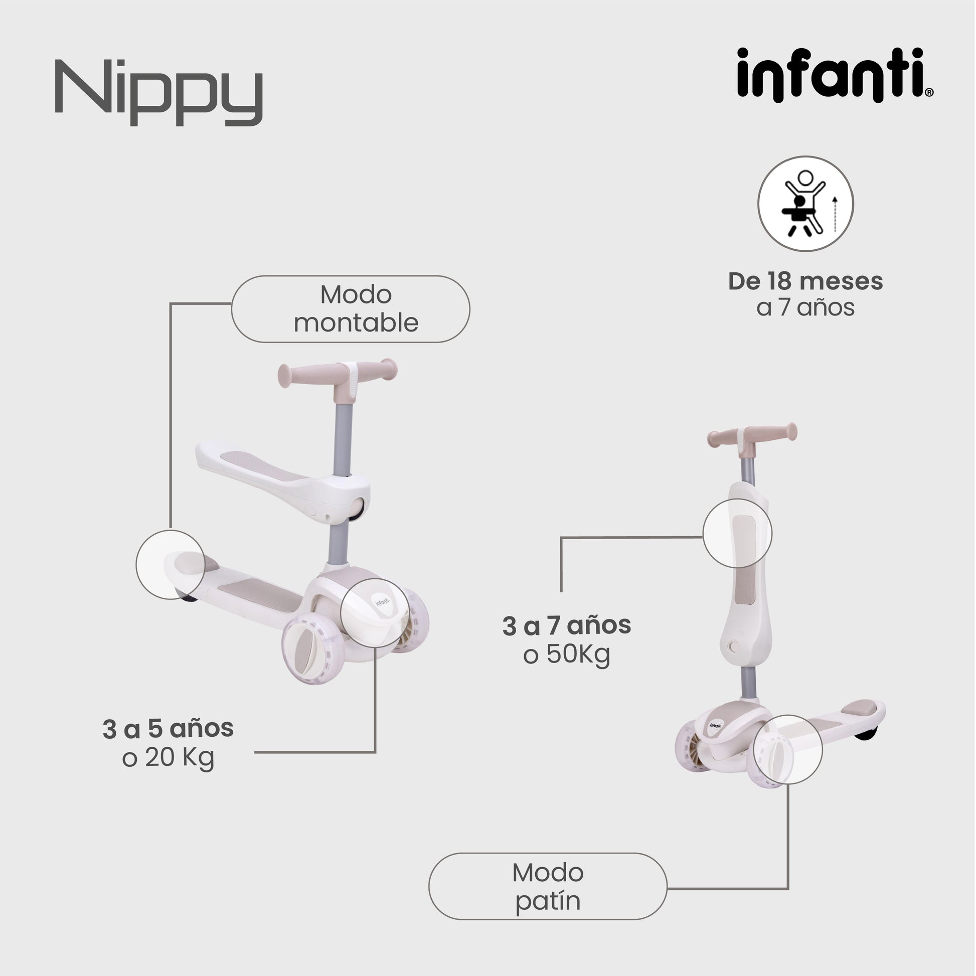 Patín - Montable 4 En 1 Infanti Nippy Con Barra De Seguridad