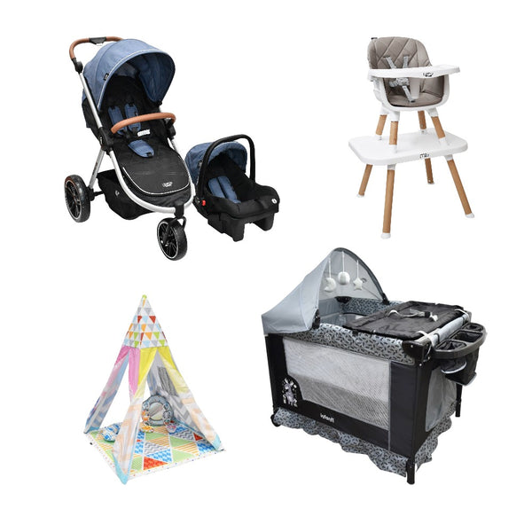 Un conjunto esencial diseñado para acompañar a tu bebé en cada etapa de su crecimiento. Este set premium combina funcionalidad, diseño y la calidad que necesitas para disfrutar de cada momento con total tranquilidad. Incluye la versátil Carriola Maverick TS, la adaptable Cuna - Colecho de Viaje Silver, la práctica Silla 6 en 1 Mila y el estimulante Gimnasio - Tipi.