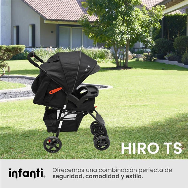 Incluye carriola y asiento de auto con sistema de acoplamiento. El asiento es multiposiciones con opción de reclinado total, incluye arnés de seguridad de 5 puntos, suspensión en ruedas, charola extraíble con portavasos, manillar ajustable y amplia canasta de almacenamiento. Fácil de plegar y transportar.