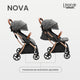 La carriola Nova es excepcional gracias a su innovador cierre automático, con solo presionar un botón, la carriola se pliega de forma rápida y sencilla, convirtiéndola en la elección perfecta para padres que buscan comodidad, estilo y practicidad en su día a día. ¡Disfruta de la facilidad y conveniencia que ofrece la carriola Nova!