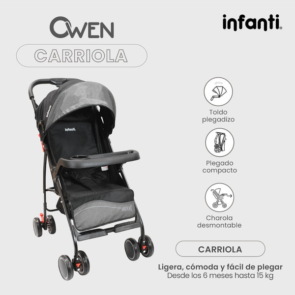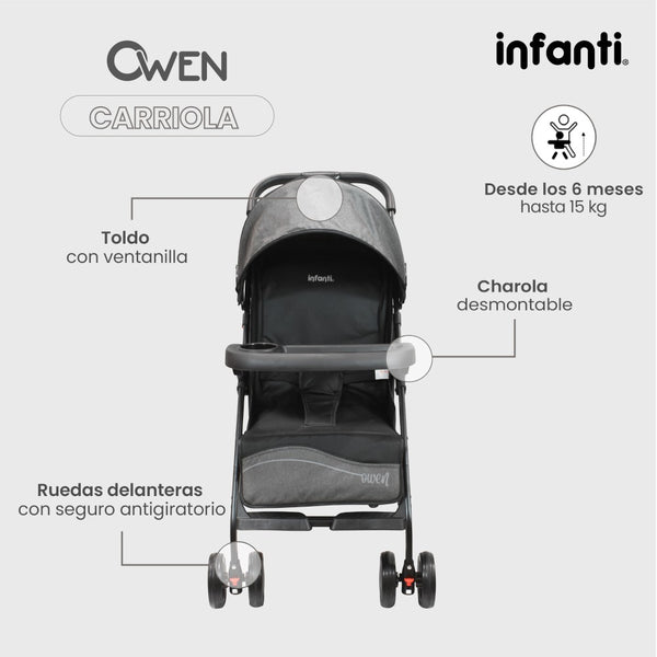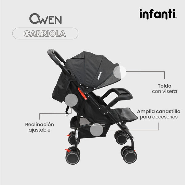 La Carriola de Bebé Infanti Owen Plegable es una solución ideal para padres que buscan comodidad, seguridad y practicidad en los paseos diarios con su bebé. Diseñada para ser ligera y fácil de manejar, esta carriola ofrece una combinación perfecta de funcionalidad y estilo.