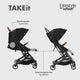 TAKE it and go… Un sistema de viaje único que se convertirá en el compañero perfecto para viajar. La carriola tiene una práctica agarradera que te permite doblarla y llevarla como maleta, facilitando su transporte, lo mejor de todo es que cabe en la mayoría de los compartimentos superiores de los aviones, lo que la hace ideal para viajes sin complicaciones. Además, incluye un autoasiento con base para utilizar en el automóvil, disfrutarás de la comodidad y facilidad de llevar contigo el sistema de viaje a cualquier lugar.